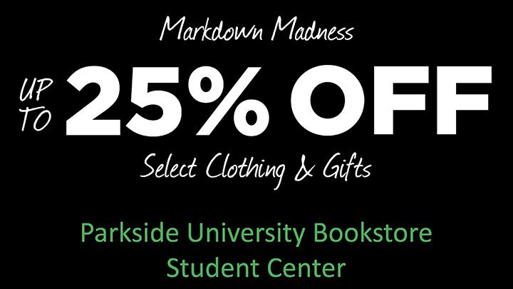 Now through April 12, receive UP TO 25% OFF on Select Clothing & Gifts at the UW-Parkside University Bookstore!