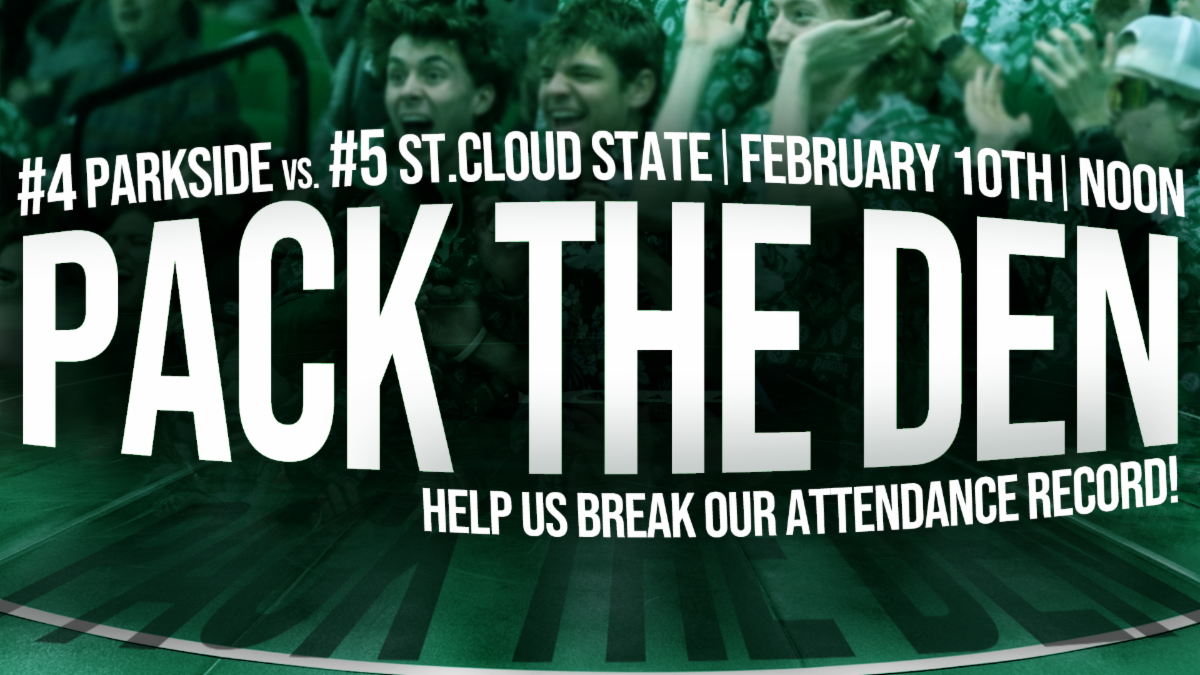 Join us on February 10th as we attempt to break the Parkside Athletics attendance record with the first-ever PACK THE DEN as we face the St. Cloud State Huskies! This date is full of exciting promotions for all! Some of these include Wrestling Alumni Day and the launch of the Parkside Wrestling Limited Edition T-Shirts! 🤼🐻