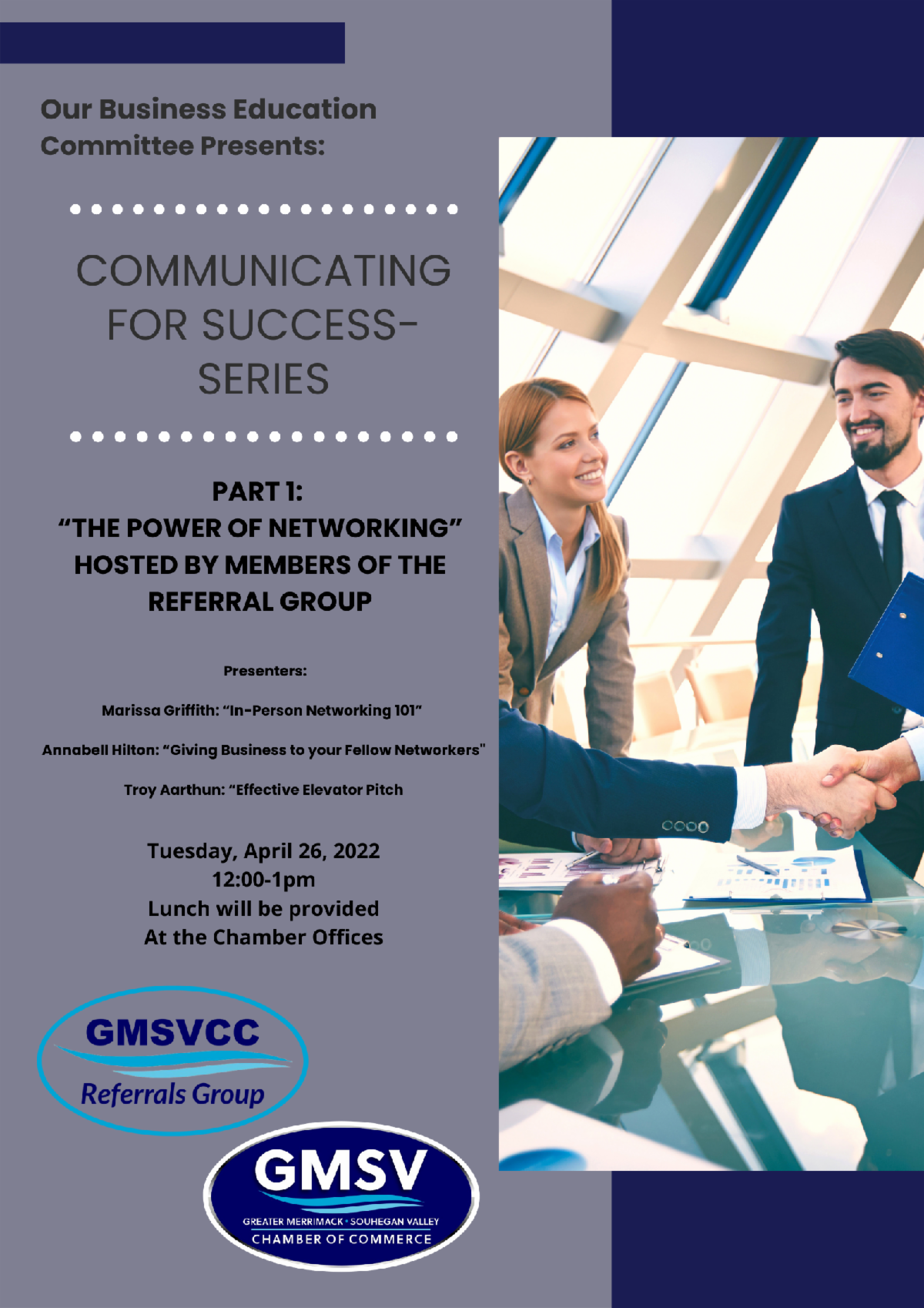 Call (603) 673-4360 or email Liz Calabria Liz.Calabria@gmsvcc.org if you have questions or need help finding ways to be an active chamber member.