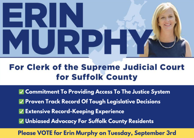 The Election is only 50 days away and I am seeking your support for Clerk of the Supreme Judicial Court for Suffolk County. Over the past three years Team Murphy has been showing up in neighborhoods all across the City and we have been delivering quality constituent services, advocating for better schools, more senior and veteran services, clean parks, safer streets and supporting our City workers and first responders. It has been both an honor and a privilege to serve you all and I humbly ask that you continue to support me in this race.