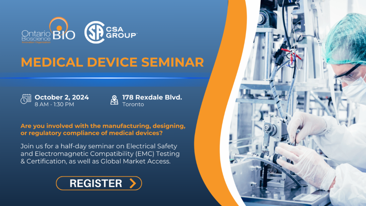 In partnership with CSA Group, OBIO® is excited to invite you to attend a half-day seminar on Electrical Safety Testing & Certification, Electromagnetic Compatibility (EMC) Testing & Certification, and Global Market Access. This is a valuable opportunity to learn and expand your current knowledge of medical device testing and certification, ask industry experts questions, and network with fellow professionals.