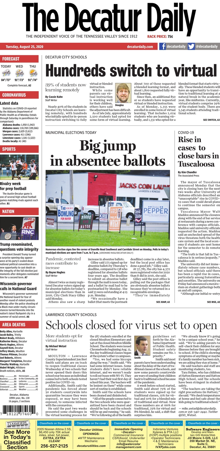 Decatur Daily - Absentee ballot signups for today’s municipal elections double those in 2016 in Decatur