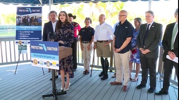 FAU Harbor Branch Executive Director Jim Sullivan, Ph.D. joined Governor Ron DeSantis, First Lady Casey DeSantis, Congressman Brian Mast, and several leaders to announce new water quality initiative and website,
