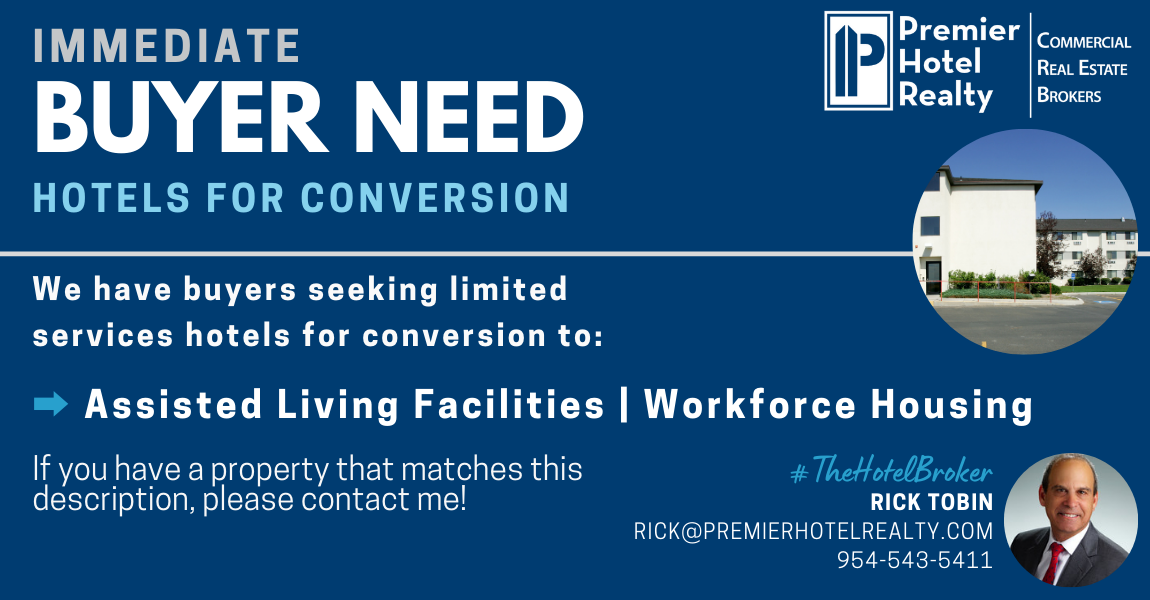 We have a high demand from buyers who are urgently seeking hotel properties in Florida, Texas, California & Colorado.