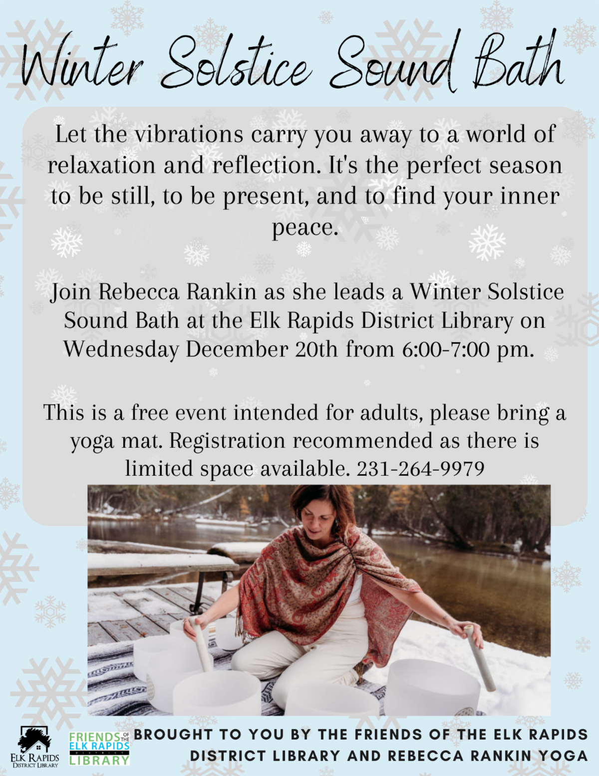 Dec. 20, Winter Solstice Sound Bath at ER Library, 6 pm
