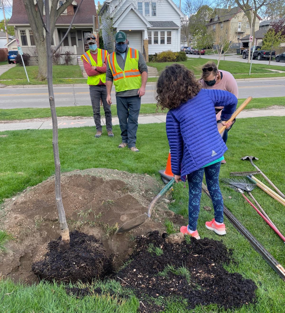 Fourth and fifth grade students and staff at Washington Elementary School - along with Mayor Dennis McBride, representatives from the City of Wauwatosa and our District Buildings & Grounds Crew - celebrated Arbor Day on Friday, April 30 by planting a tree near the 68th Street entrance of the school. We'd like to give a special thanks to the City of Wauwatosa for donating the new tree, and to students Adeline Lenz, Aidenn Riepenhoff, Lyric Alexander-Green and Brynn Noe for sharing what Arbor Day means to them during the celebration.