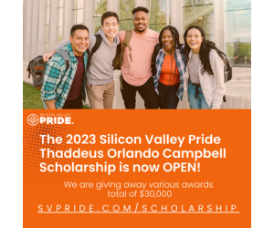 Silicon Valley Pride is excited to promote a scholarship opportunity. LGBTQ+ students have a chance to receive monies from a $30,000 scholarship to support their college education. Encourage them to submit their applications through svpride.com/scholarship.