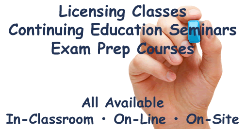 - Register as you normally would for one of our traditional In-Person Pre-licensing classes or Continuing Education Seminars