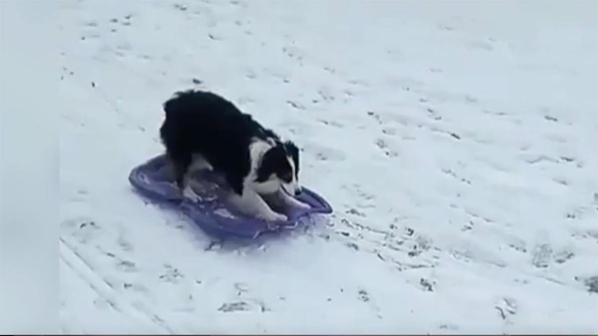 Clever Dog Takes Herself Sledding