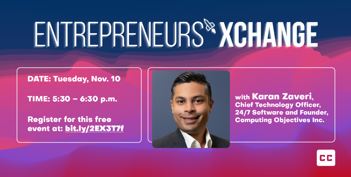 Join FAU Tech Runway for the next Entrepreneurs' XChange from 5:30 to 6:30 p.m. on Nov. 10 with Karan Zaveri, chief technology officer of 24/7 Software and founder of Computing Objectives Inc., as he shares his journey of launching and scaling his company. Zaveri will discuss unique insights on long-term technology vision, software as a service platform and more.