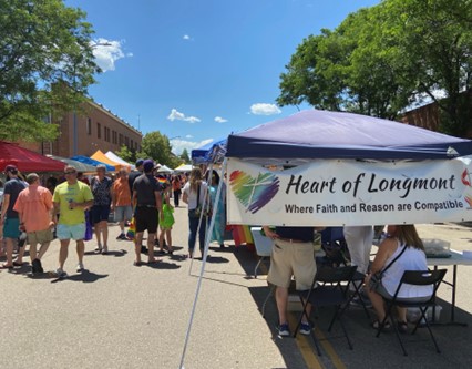 The Heart of Longmont’s booth was a hive of activity. People gathered asking about the church, collecting church swag and intently creating beaded key chains and rainbow arches.