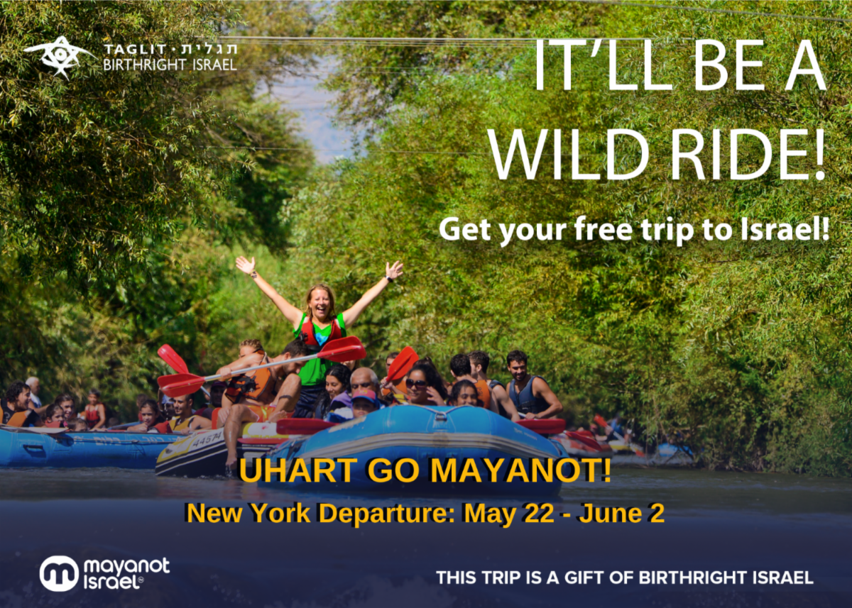 Choose your trip in the Birthright Trip Marketplace. To join our UHart trip, select the University of Hartford trip with Mayanot, departing May 22.