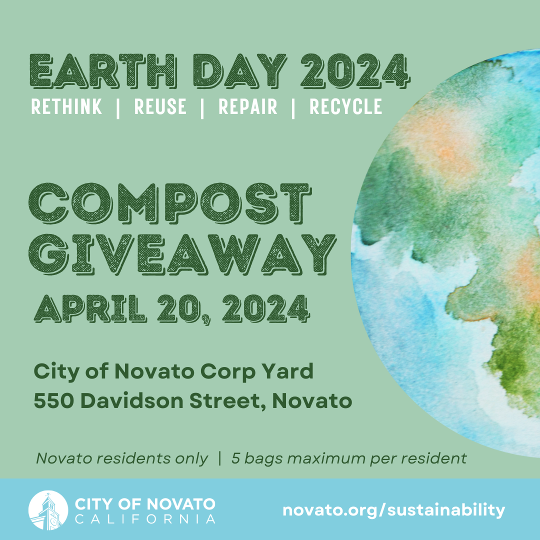 Did you know the food scraps and yard clippings you put in your green Recology cart are turned into WM EarthCare organic compost right here in Novato? The City of Novato is hosting a compost giveaway on Saturday, April 20 at the City’s Corp Yard, 550 Davidson Street.
