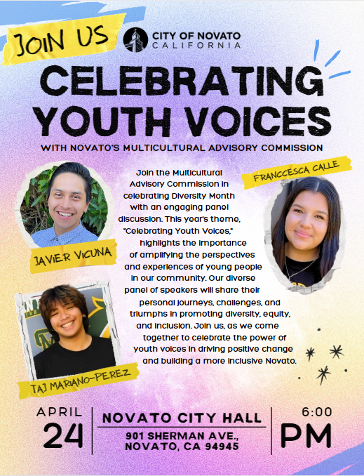 Celebrate Diversity Month with Novato’s Multicultural Advisory Commission for its 3rd annual Diversity Month event. Join us on Wednesday, April 24, 6pm at Novato City Hall, 901 Sherman Avenue.