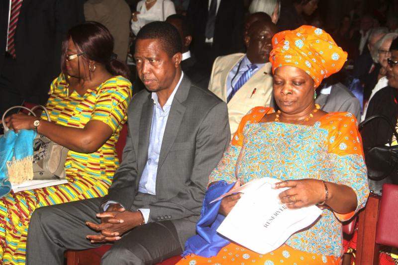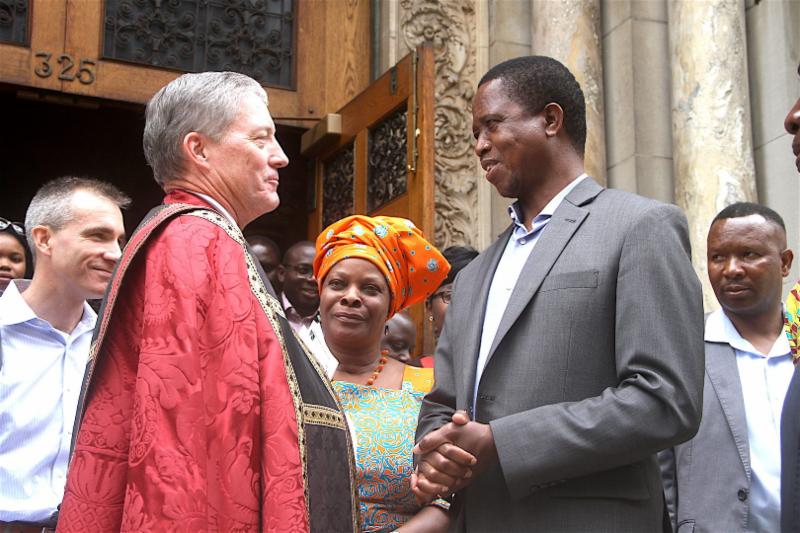 President Lungu and First Lady Esther Lungu with St Bartholomew Interim Rector Rev. Dr Robert Dannals during service at St Bartholomew Anglican Church.