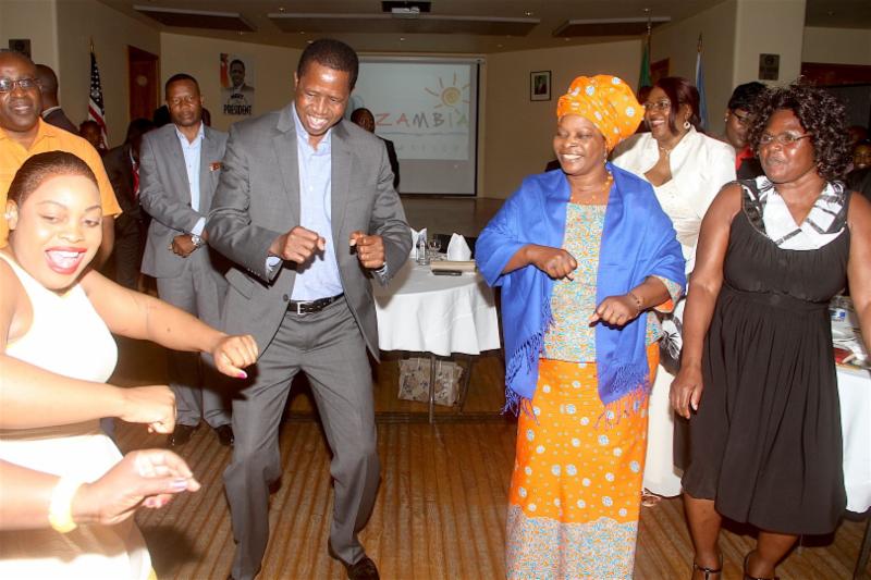 As he was speaking, attendees began embracing each other with cries of "One Zambia, One Nation."