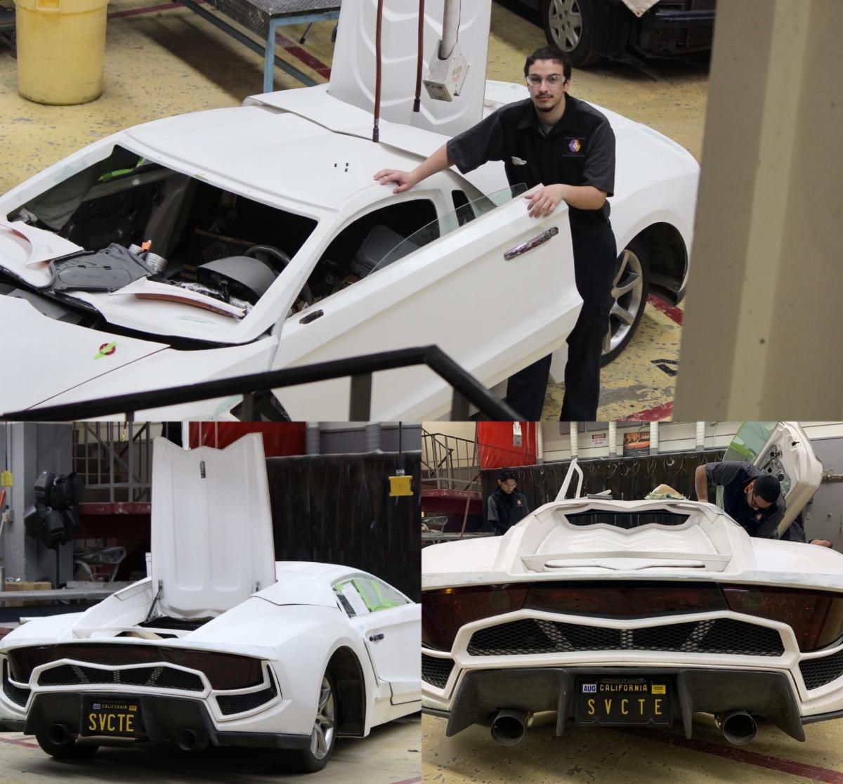 In SVCTE Auto Body Repair, students learn theory and techniques of welding, metal straightening and panel/body alignment on a variety of auto body industry materials including metal, glass, and plastic. Donavan Kamakani from Del Mar High School in Campbell Union High School District is working on changing the look of this car completely using carbon fiber parts.