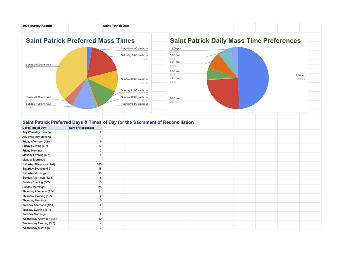 Thank you for taking the time to complete the first survey about Mass times. The results are detailed below. Click on each image for better readability.