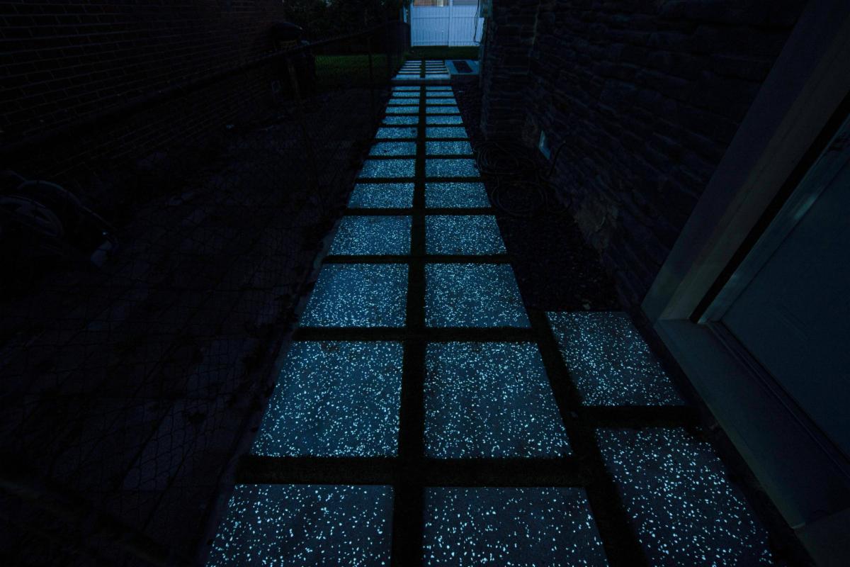 I met Alex, an established paver and retaining wall installer four years ago. He developed and patented a granular and stone material that can be added into concrete and other types of mix which allows the products to glow in the dark. The material absorbs the light during the day and glows up to 8-10 hours at night! The most common uses for slabs, paving stones, pool coping, sidewalks, stair treads, tombstones, Polymeric sand, driveways, benches, tiles, street airport markings and sidewalk markings. Call 314-960-0540 to discover how your products can glow! |