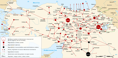 Entire Armenian communities were deported to the deserts of Syria and Mesopotamia where hundreds of thousands were killed or starved to death.