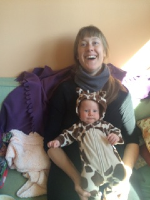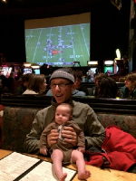 Laila's first superbowl (she's not allowed to look at the screen!)