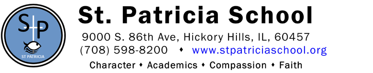 Thank you for your support while we worked with the Hickory Hills Police Department last Friday regarding the bomb threat. As with all we do here at St. Patricia School, the children’s safety is number one. Thank you for your trust in us.