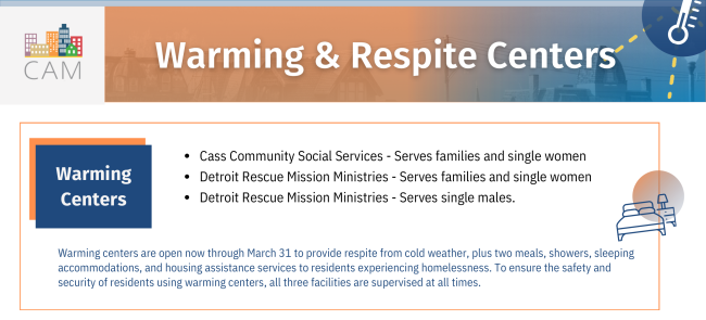 If you live in Detroit, Hamtramck, or Highland Park and are experiencing homelessness, please call CAM at (313) 305-0311.