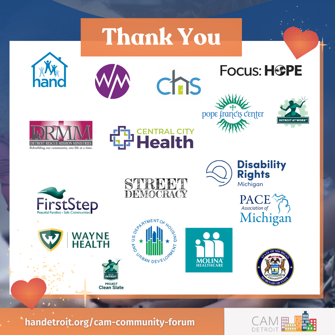 The CAM Community Forum is just around the corner! Please join us at our forum and resource fair taking place November 3rd at Focus: HOPE. Guests will receive real-time connections to supports, help troubleshoot navigating the homeless service system, and presentations on the recent CAM Transition. Refreshments are provided.