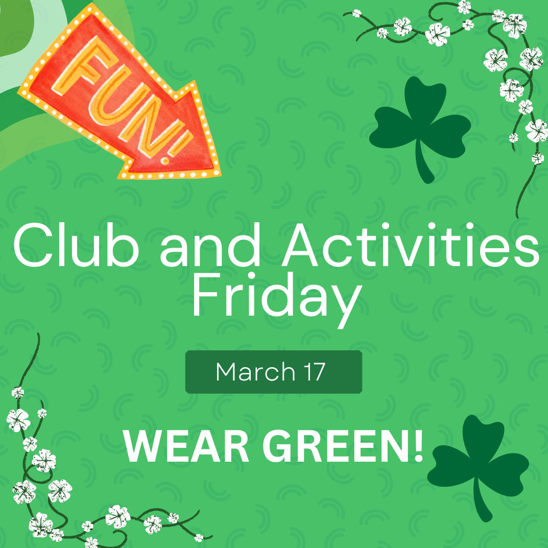 Mark your calendar for our last Club Friday of the school year which will be held on Friday, April 21.