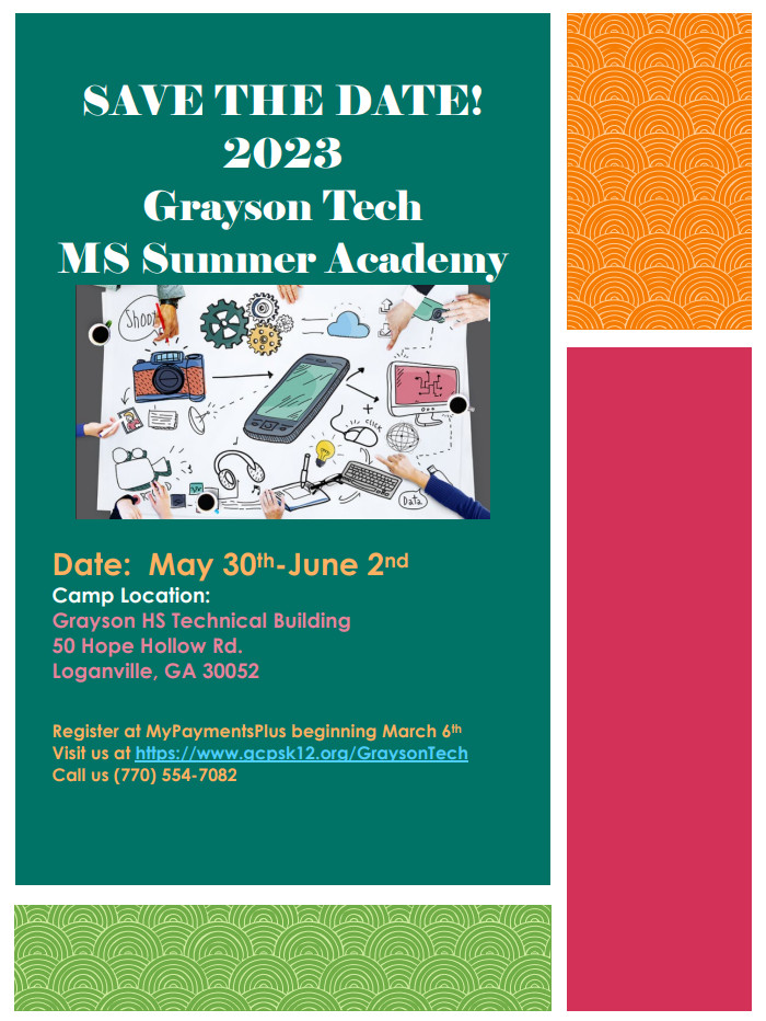 Grades 6-8: Grayson Tech Middle School Summer Camp | |
