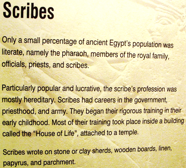 Only kings, upper classes and scribes could read, leaving ancient Egypt with an overall literacy rate of less than one percent.