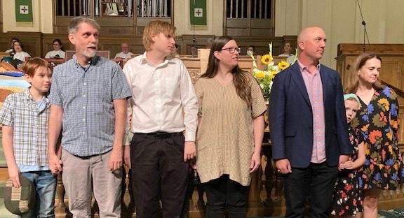 On World Communion Sunday, First Church welcomed 14 people into membership: Todd and Kim Garza and their children, Sylvan and Lucien; J. D. and Jessica Harper and their children, Grace and Lawson (not