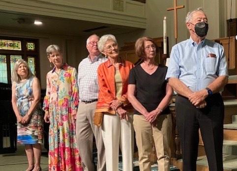 pictured); Jan Patterson; Becky and Mark Konen; Marcia Solomon; and Nancy and Russ Cook. We also welcome Bishop Dan Solomon (not pictured), Marcia’s husband and a retired bishop in the United Methodist Church, who joins this community of faith in worship and fellowship, though his official church membership remains with the United Methodist Council of Bishops.