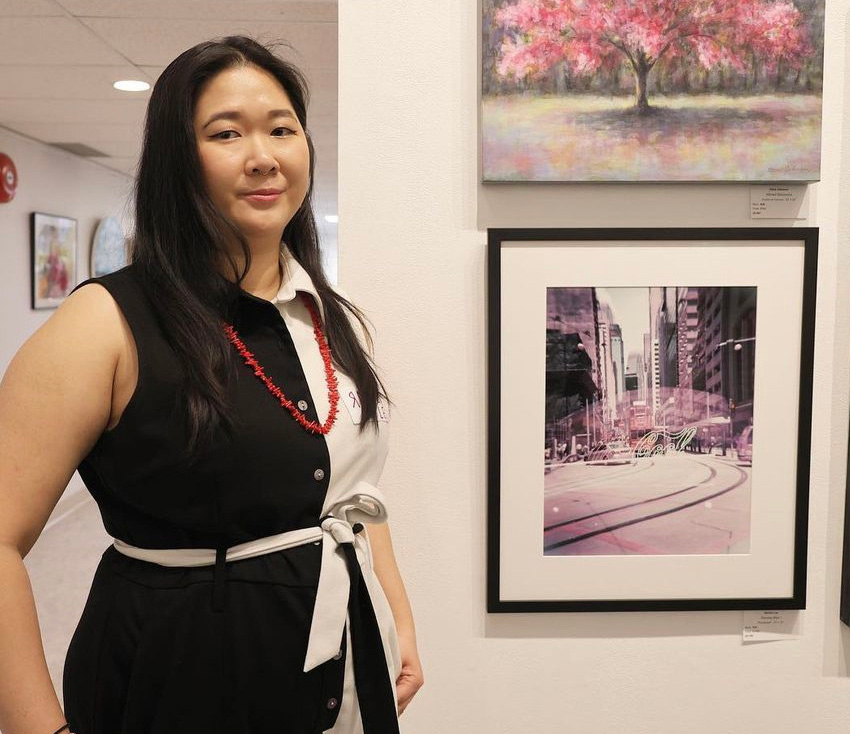 Art Rental is Rachel Lee -she is shown here with recently sold photograph 'Sheung Wan I'. Her art "sheds light on the experience of navigating through familial bonds, love, loss – life as a neurodiverse Chinese Canadian Catholic woman in a post-truth era. Through reflection and acceptance of my conflicting views, I investigate the shared experience of my self and my contemporaries in terms of personal, cultural, and religious identities." Her other piece in the collection is 'Quarry Bay I' which rents for $30/month or $1080 to purchase.