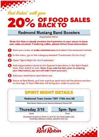 E-mail volunteers@redmondhsptsa.org for questions or to volunteer.