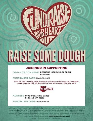 MOD Pizza will donate 20% of sales purchased, when the flyer or fundraiser code is used, to RHS Choir Boosters!