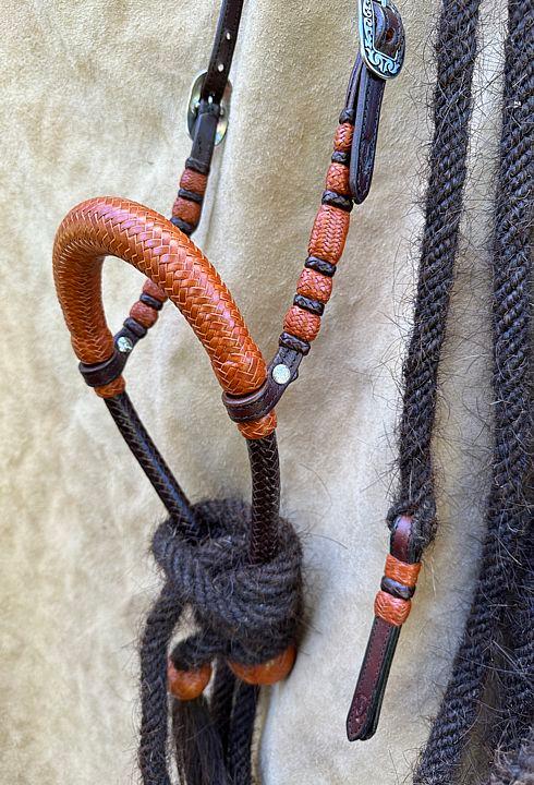 Double Sliding Ear Headstall in rawhide and roo