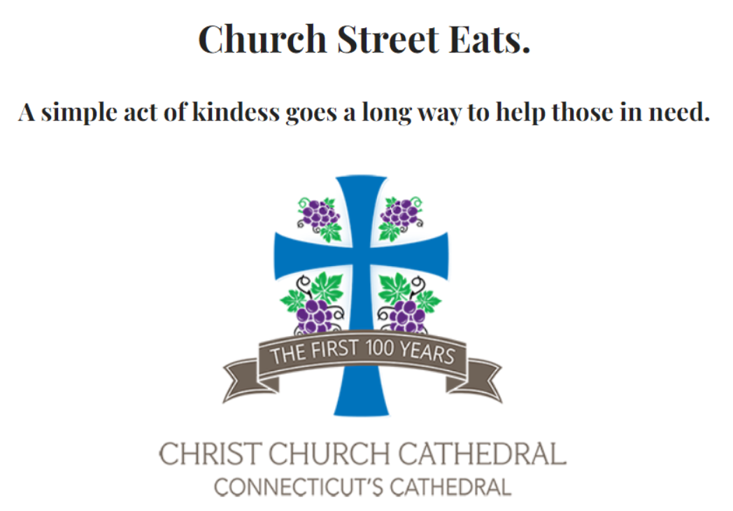 Church Street Eats is a cooperative ministry operating out of the historic Christ Church Cathedral, providing meals and clothing to people in need, in and around Hartford. The number of people who depend on Church Street Eats continues to increase. Likewise, the opportunities to be a part of this caring community also continue to grow.