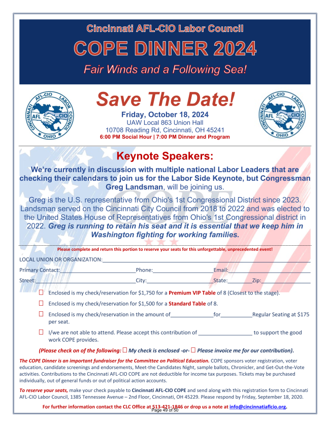 Join me on July 27th at 10 am at 3457 Montgomery Rd, Cincinnati, OH 45207, for our first labor-to-labor canvass kickoff of the year.