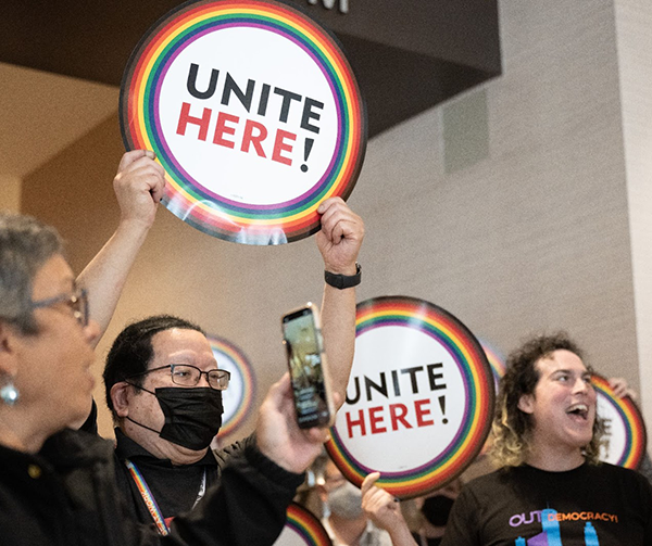 And at the same time, we see these same legislators also working to make it harder for working people to form a union. This is no coincidence: Extremist lawmakers know that one of the strongest weapons to fight discrimination in all its forms is a union card. Union contracts are legally enforceable in every state—meaning that an inclusive collective bargaining agreement can serve as a critical first line of defense for queer and transgender workers. Organizations like Pride at Work are fighting to ensure more locals incorporate model contract language that protects access to gender-affirming care, enshrines non-discrimination clauses and codifies dignity in the workplace, regardless of sexuality or gender.