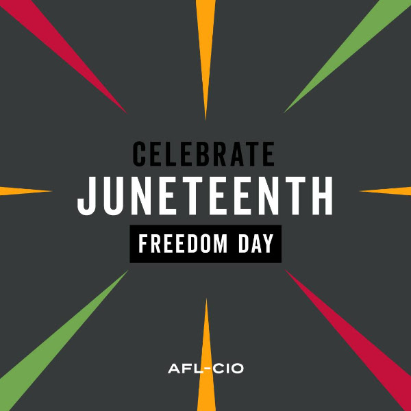 Wednesday June 19th was Juneteenth, and around the country, communities came together to celebrate and reflect on the freedom of formerly enslaved Black people in Texas and the United States as a whole. In acknowledgment of this powerful holiday, the AFL-CIO reaffirms our commitment to racial justice and equity in the labor movement. We embrace Black power, resilience and joy, and we recommit ourselves to rooting out the scourge of systemic racism against our Black brothers, sisters and siblings in the workplace and in all corners of American life.