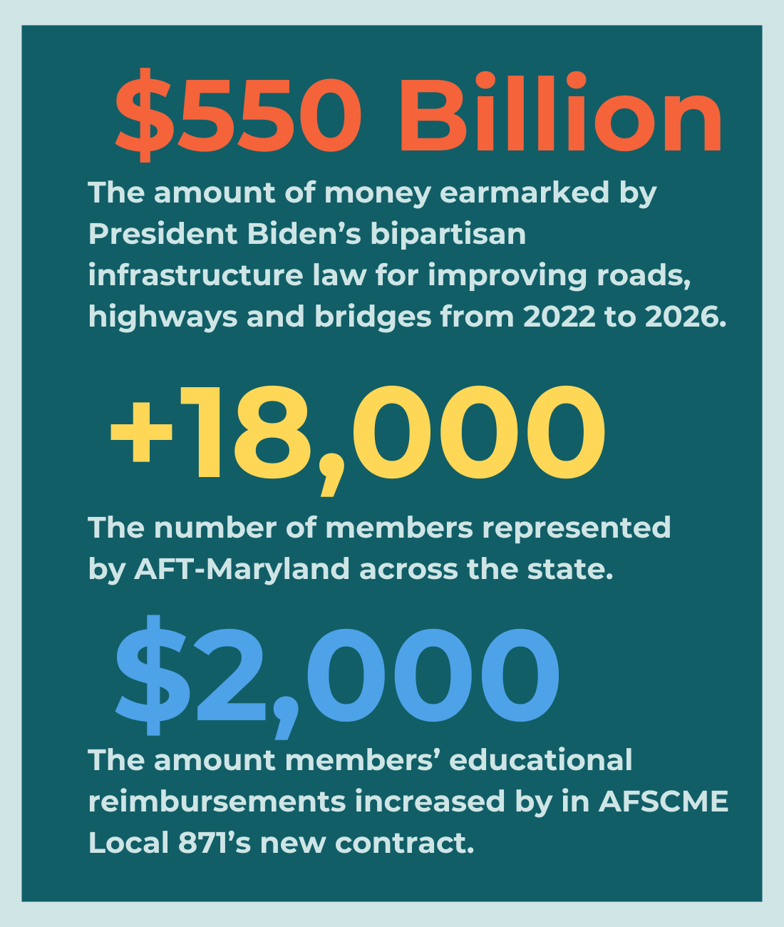In connection to these critical investments, Biden also used an executive order to require project labor agreements for most large-scale federal construction projects so more of these important jobs provide the wages, dignity and benefits necessary for workers to provide for ourselves and our families.