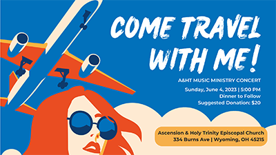 The Music Ministry of Ascension & Holy Trinity, Wyoming, presents "Come Travel With Me!", a concert and meal, on Sunday, June 4 at 5 p.m. All proceeds will benefit the new High School Choral Scholar Program, which will provide two area students with intensive training in the art of choral singing and practical skills to add to their resumes and college applications.