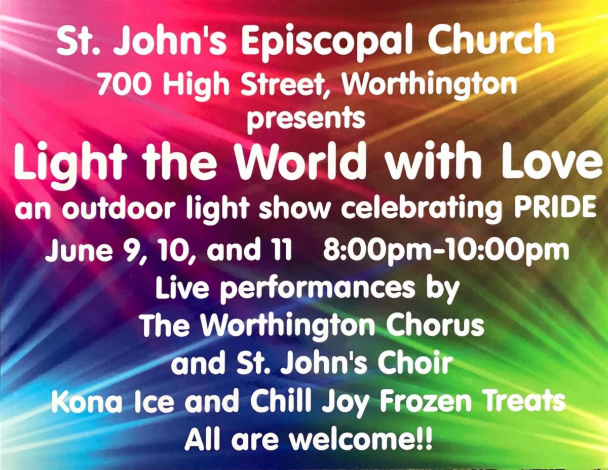 St. John’s, Worthington will host "Light the World with Love," an outdoor light show in celebration of Pride, June 9 to 11.