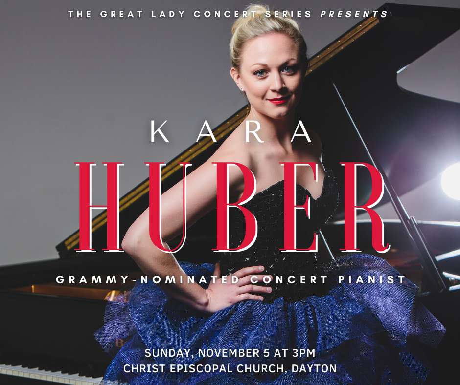 The Great Lady Concert Series at Christ Church, Dayton, presents Kara Huber, Grammy-nominated and prize-winning concert pianist, on Sunday, November 5 at 3 p.m. This dedicatory concert will showcase “Ruby,” Christ Church’s new Steinway Sterling Edition, Model D Concert Grand Piano.