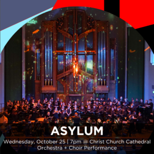 Christ Church Catheral will host the final concert on Wednesday, October 25 at 7 p.m. The program, which includes works by Saunder Choi, James MacMillan, Gabriela Lena Frank, Judith Shatin, Caroline Shaw, and Reena Esmail, expresses a defeat of repression, a call toward justice for immigrants and refugees, and an open invitation to a better society. Reserve tickets.