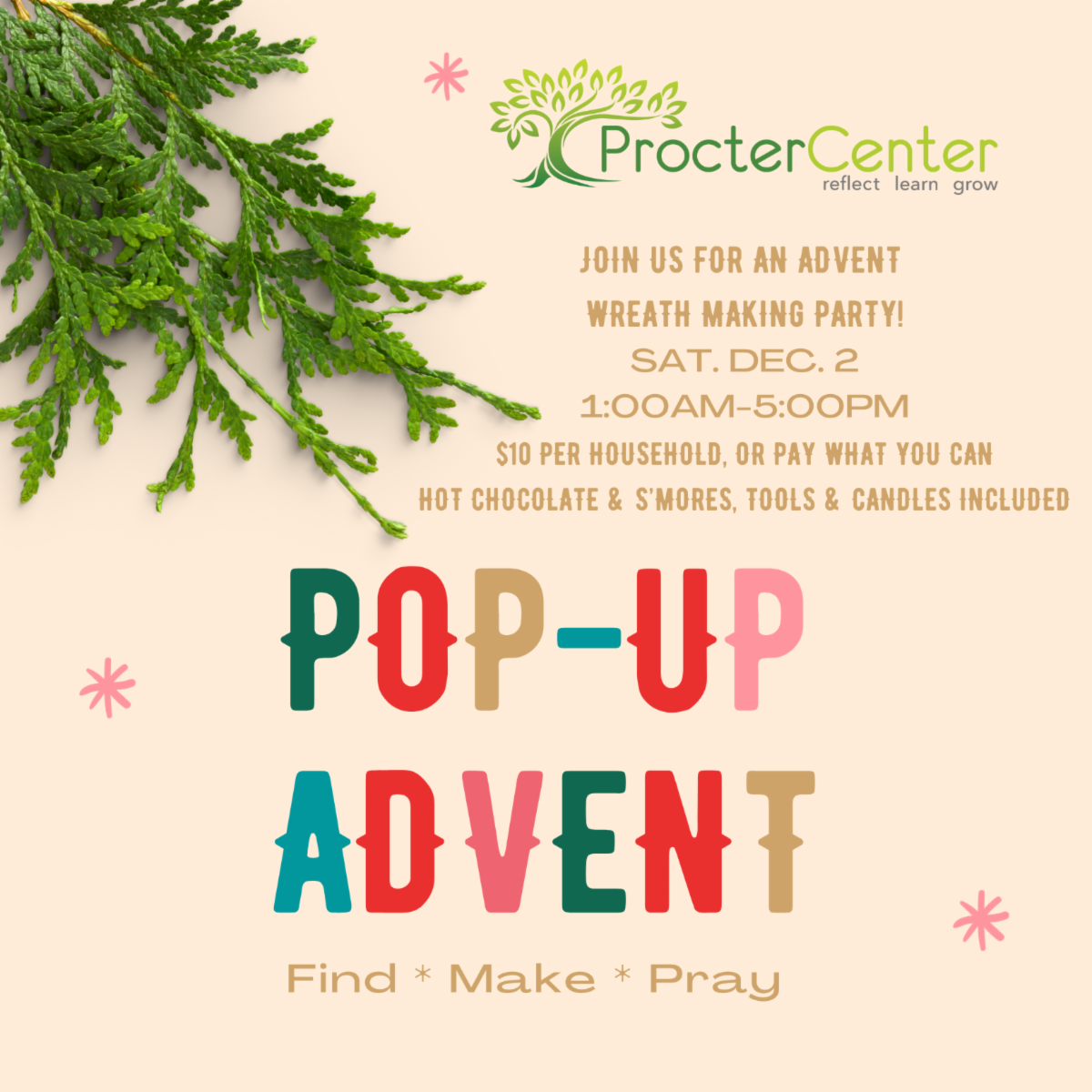On December 2 from 1 to 5 p.m., Procter Center will host an afternoon of Advent-themed activities for all ages. The day will include: