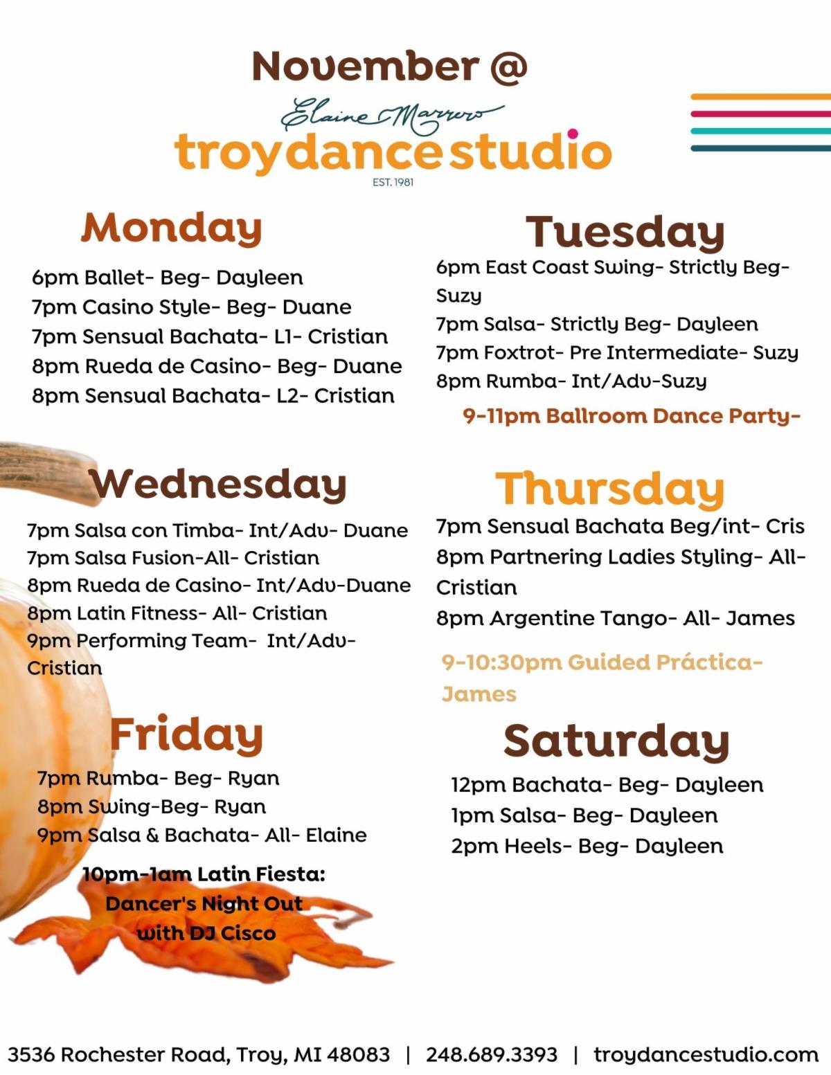 Alex with be conducting special Ballroom workshops beginning Monday, November 13th. Don't miss out!