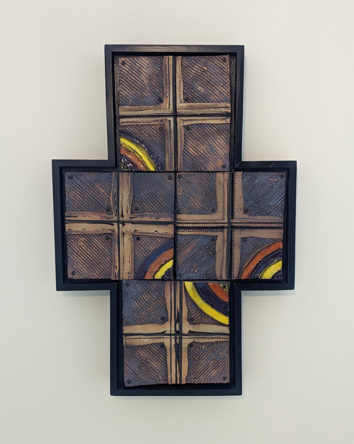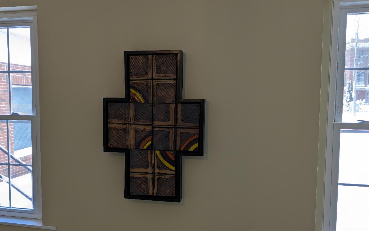 We are blessed to have a congregation of members whose talents are amazing. One such person is Ken Foster. Ken has donated a gorgeous cross which he created using ceramics and wood. We have installed it in the hallway between the ramp and Colonial Room.