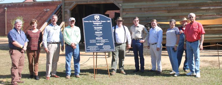On November 3rd, project sponsors gathered at the Georgia Museum of Agriculture in Tifton for the unveiling of the restored historic cotton gin in the museum’s Historic Village. This project took two years to complete, and cost over $85,000. All funding was provided by sponsors, including the Georgia Cotton Commission. This event was the first time cotton had been ginned at the museum since October of 2008.